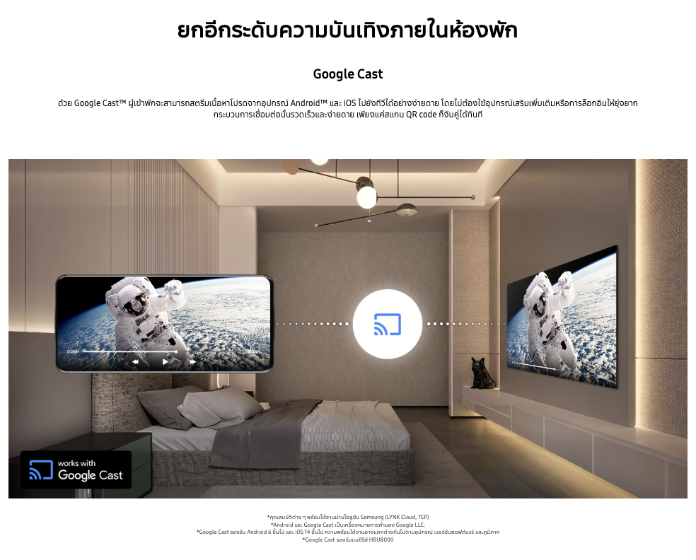 ด้วย Dynamic Crystal Color จะช่วยให้จอภาพของห้องพักคุณแสดงสีสันต่อผู้เข้าพักได้อย่างน่าประทับใจ ด้วยความคมชัดสูง และสีสันที่สมจริง